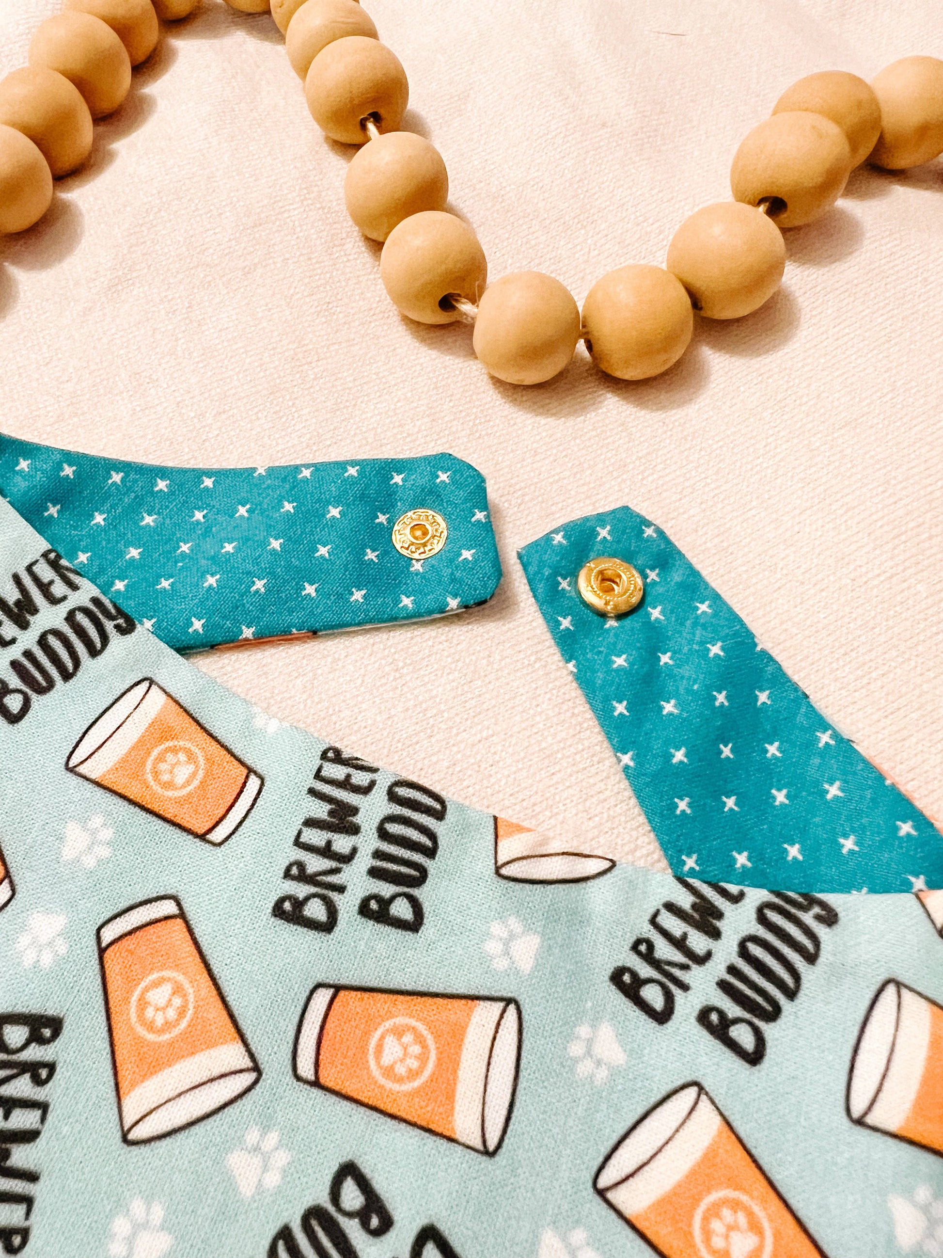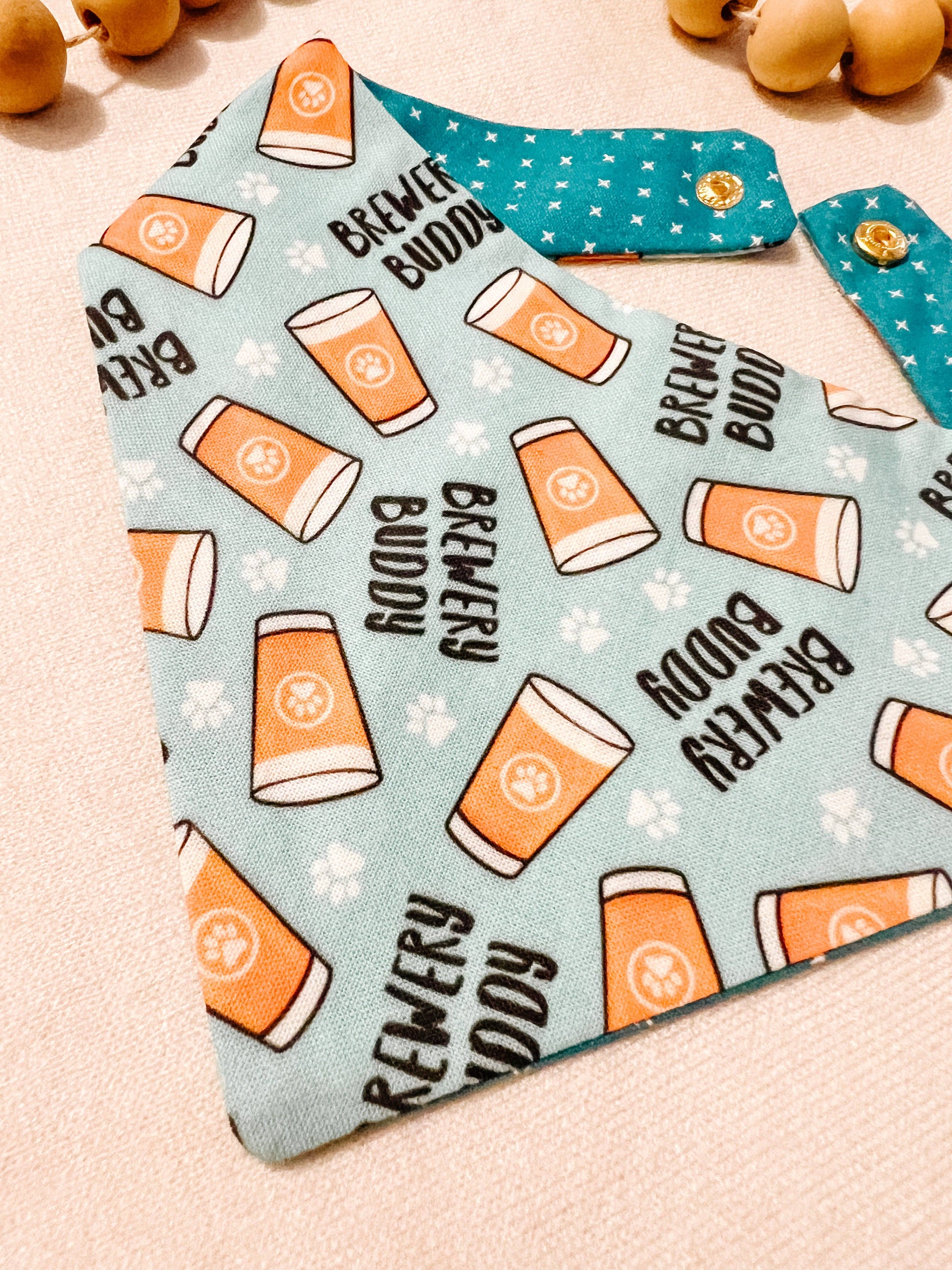 Raise a toast to style with our Brewery Buddy Reversible Dog Bandana! Handmade from soft, durable cotton, this curved neck bandana is perfect for pups who love to hang out on walks, at outdoor patios, or just lounging with their favorite humans.