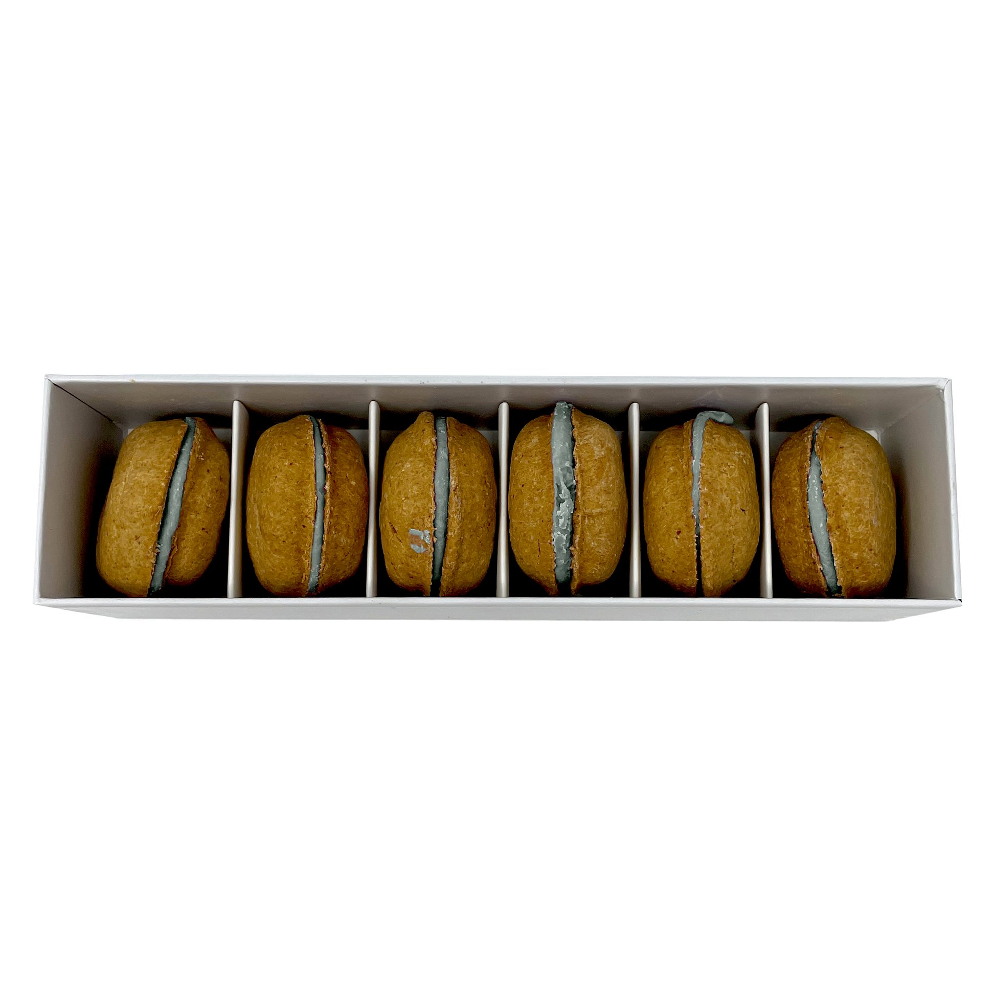 Each elegant box includes 6 handmade, hand-designed dog macarons, created in small batches in North America using locally sourced, human-grade ingredients. The hard texture provides a longer-lasting chew, while the smooth Crème Brûlée–flavored filling adds irresistible sweetness for your pup’s special moments.
