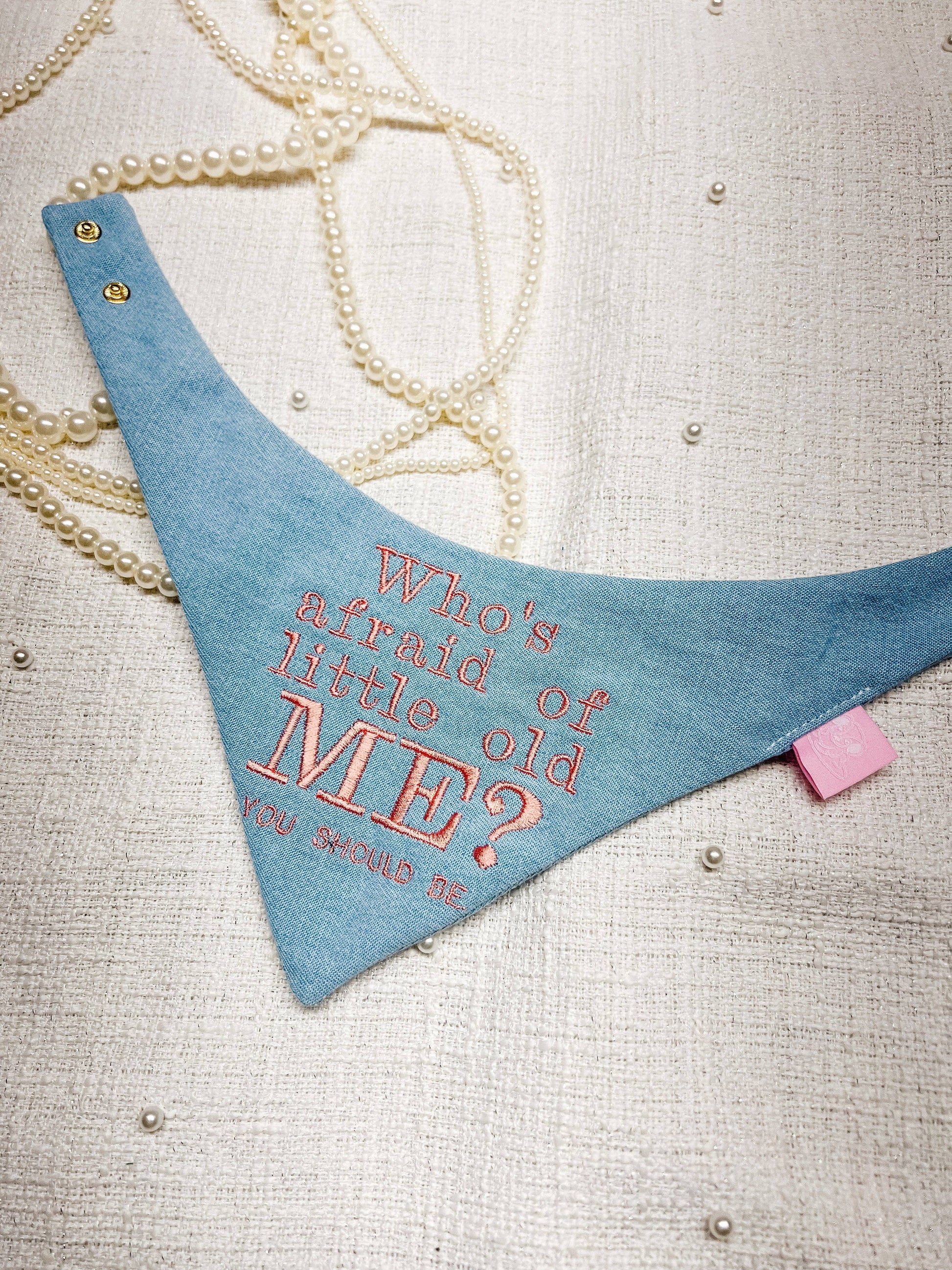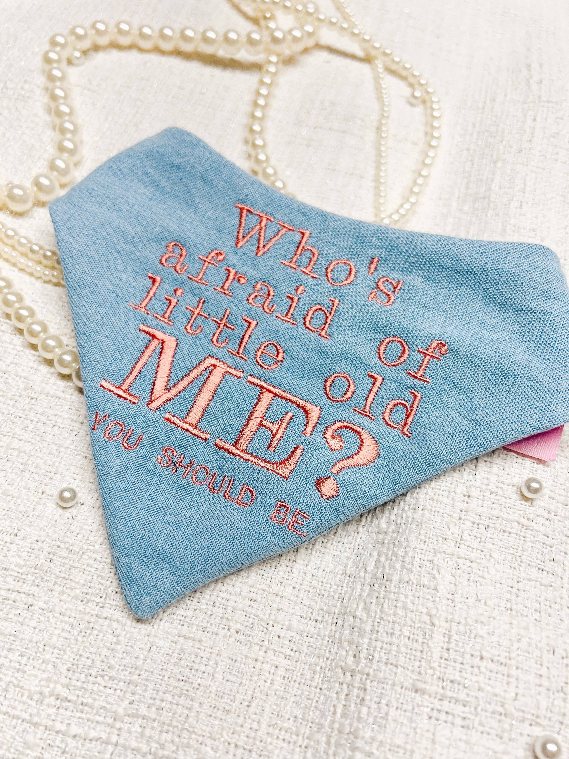 Who’s Afraid of Little Old Me Reversible Dog Bandana – Snap-On Curved Neck Collar XXL