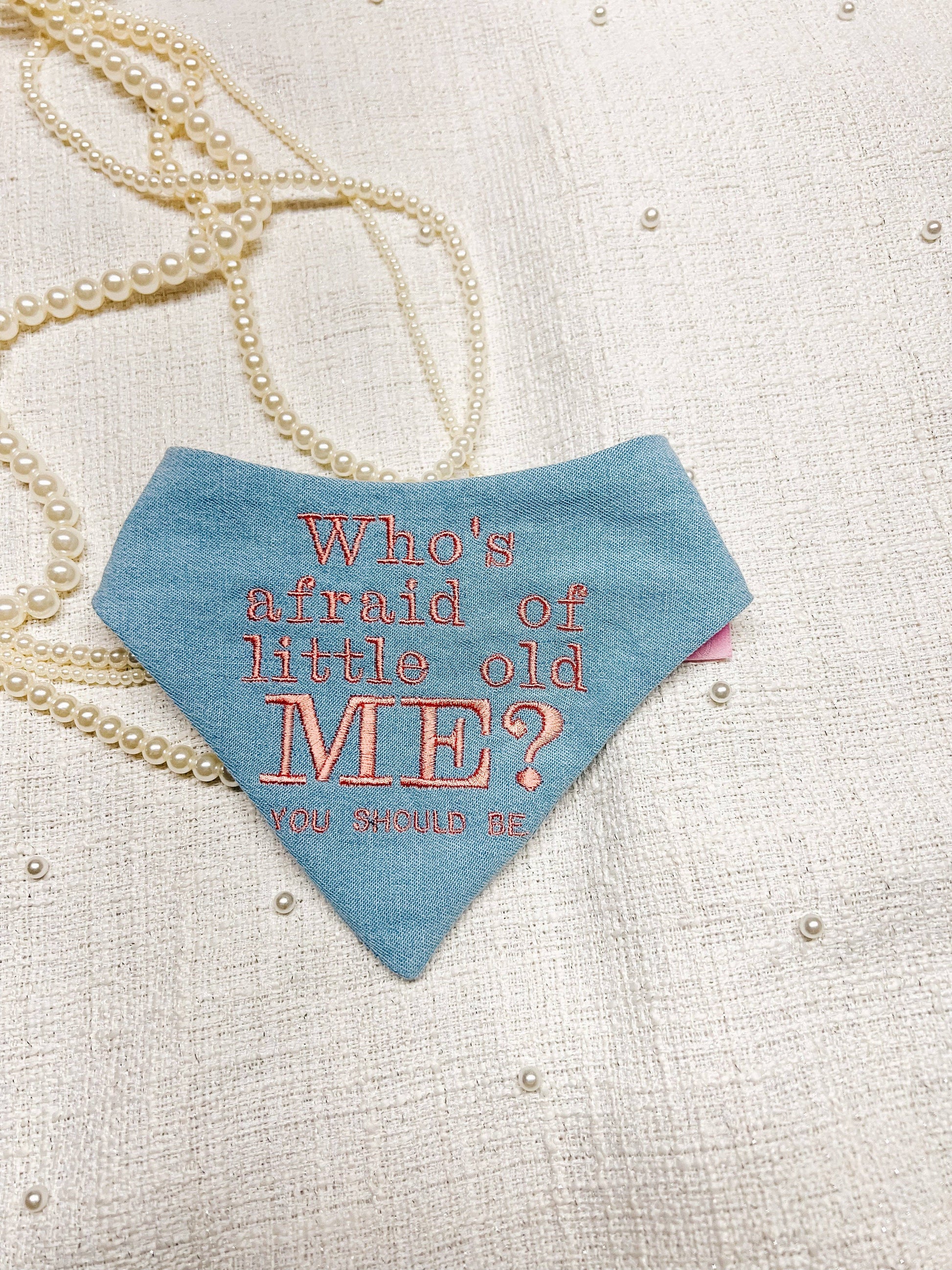 Let your pup channel their inner superstar with our Who’s Afraid of Little Old Me Reversible Dog Bandana, inspired by Taylor Swift’s fearless energy and iconic lyrics.
