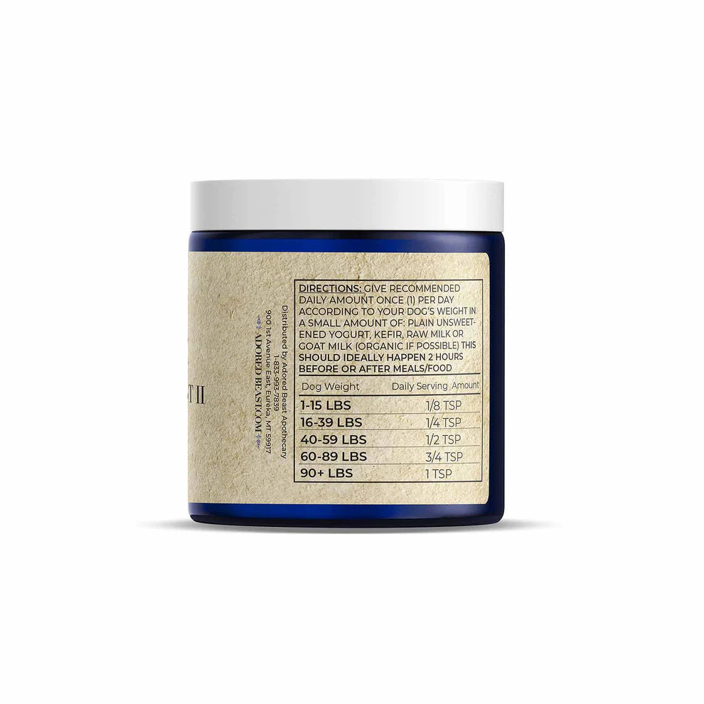 Yeasty Beast II is a thoughtfully formulated blend of enzymes and herbs designed to support yeast balance in dogs while minimizing the risk of an intense Herxheimer (die-off) reaction, which can sometimes cause symptoms to appear worse before improving.